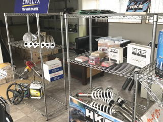 各社パーツのお取扱いをしております。バンパー・ホイール・マフラー等ライトチューンから、エンジンコンピュータ・アライメント等も取り扱っております。もちろん持込みもOKです。 レーシングガレージ ライエスは「HKS」のパフォーマンスディーラーになっております。
